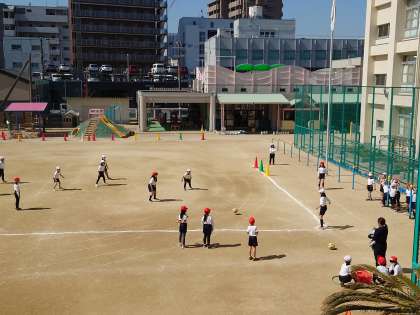子どもたちはキックベースに挑戦!