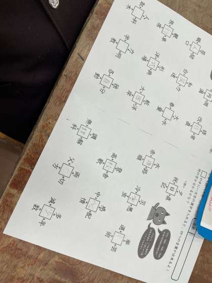 書写の時間に漢字プリントを行いました。□に当てはまる漢字を考える問題です。
