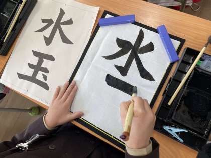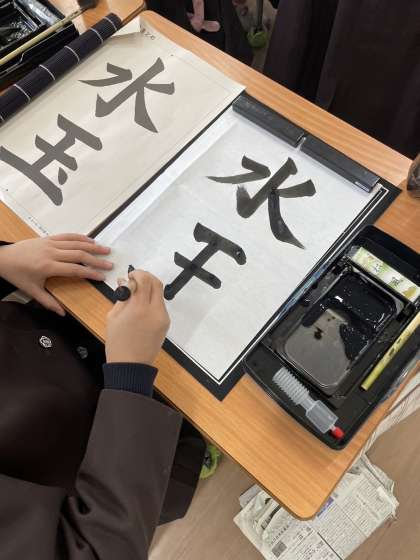 3年生最後の毛筆に取り組みました。今日の課題は「水玉」1年間の学習を振り返りながら、丁寧に書くことができました。