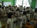講堂がまだ使えないので運動場でする予定でしたが、雨天のため教室で放送での始業式となりました。