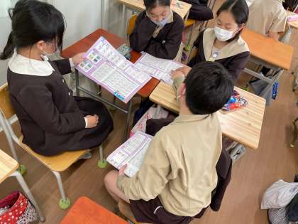 様々なアクティビティを通して、世界の国の名前や、日付の言い方などについて学習しました。