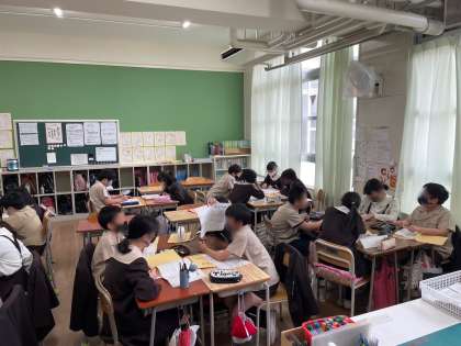 最初の家庭科では、自分の1日の生活時間を書き出し、見直す学習をしました。ゲームの時間の一部をお手伝いの時間にするなど、グループで自分の考えを発表し、アドバイスし合うことで、これからの自分の生活をどうしていくべきか考えました。