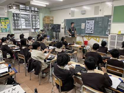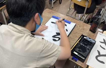 5年生になってはじめての毛筆を行いました。課題は「ふるさと」でした。落ち着いて、一文字一文字丁寧に書くことができました。