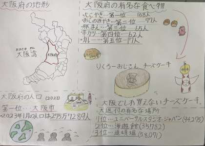 社会科では、大阪府のグルメや観光地、農業、産業などを調べてオリジナルのリーフレットを作成しています。