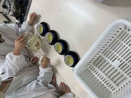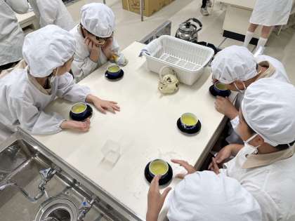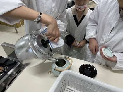 家庭科の実習で、お茶を入れました。水の量をはかり、水を沸騰させ、茶葉の入れ、手順を守って、とてもおいしくお茶を入れることができました。片付けもきちんとすることができました。