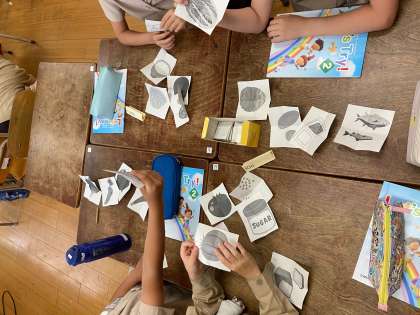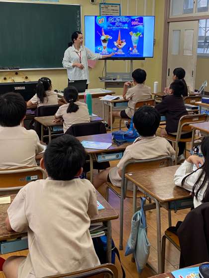 今日の外国語活動は、G7パフェを[We have Japan parfait on Sunday.]などと表現しました。「パフェは好きだけど1週間毎日はキツイ〜!」の声が(笑)