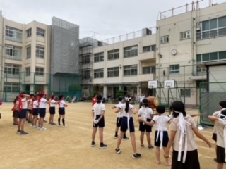今日は初めて運動場で通し練習を行いました。