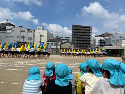6年生の表現運動を幼稚園児さんに見てもらいました。真剣な演技に園児さんは夢中になっていました。