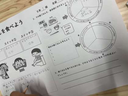 栄養教諭の先生にお越しいただき、栄養指導を行いました。今日は「朝ごはんを食べよう」というテーマで、朝ごはんの大切さについて教えていただきました。