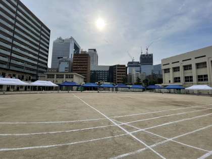 開会式前の様子です。待ちに待った運動会当日。とてもよい朝になりました!