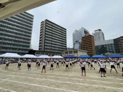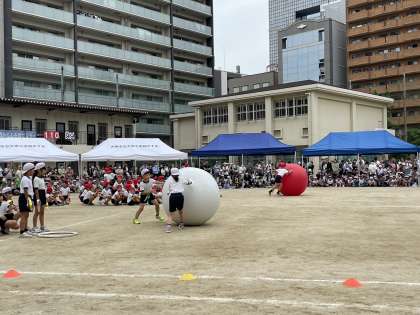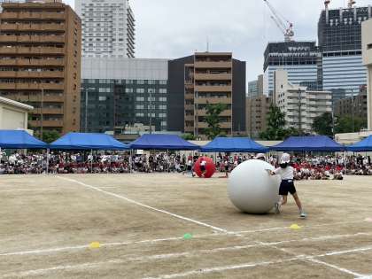 2年生による「大玉転がし 〜ポーズでダンス!〜」の様子です。元気いっぱい大玉を転がしました。かわいいダンスもとてもよかったです。