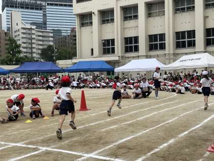 2年生による「走れ!風の大淀さん」の様子です。風のように、ゴールに向かってすいすい走ることができました。