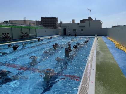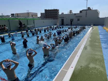 プール開きを行いました。とても晴天で、気持ちよさそう〜