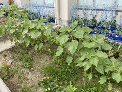 いろいろな学年の学習園で植物がしっかりと育っています。それそれの学年の児童が、しっかり水をあげています。委員会の児童も、毎日水やりを頑張っているおけげですね!