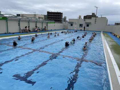 今週から始まった水泳運動。今日の天気は思わしくなかったですが,子どもたちは元気いっぱい!「今日は前より上手に泳ぐぞ!」と意欲的に取り組む様子が多く見られました。泳いだ後に「バディ?」と聞くと「オーッ!」と大きな声で答えてくれました。自分のことだけでなくバディのことも気遣う立派な3年生ですね。