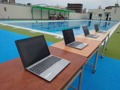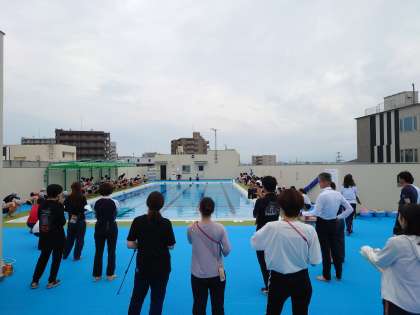 リズム泳をとりいれ、体育×音楽で授業を展開。