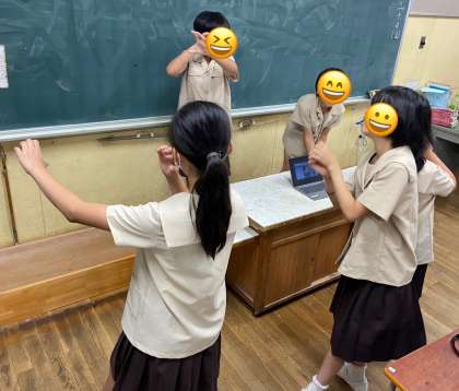 ダンスクラブの練習をする子と一緒にするお友だち。外に遊びに行けない日でも、工夫して過ごせましたね。プチ発表会のようでした♪