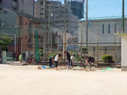 早朝から教職員が準備をしてくれています。