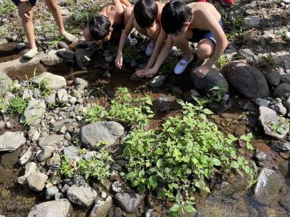 今から魚つかみと川遊びをします!何か発見できたかな?