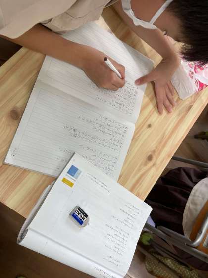 「いま始まる新しいいま」の詩を読み、ノートに視写しました。