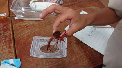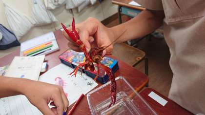 ザリガニが、各教室に来ました。