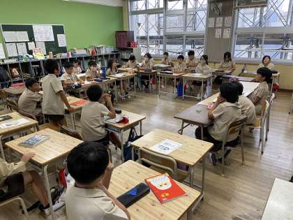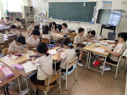 国語科で、話し合いの運び方の学習をしています。議長・副議長・書記・質問者に分担して、「学校のルールについて」や「新入生に紹介したい大淀小のこと」などを議題にし、意見交換をしています。