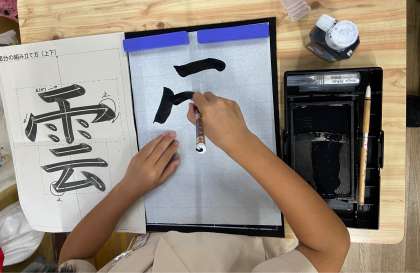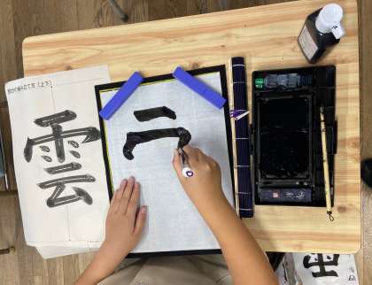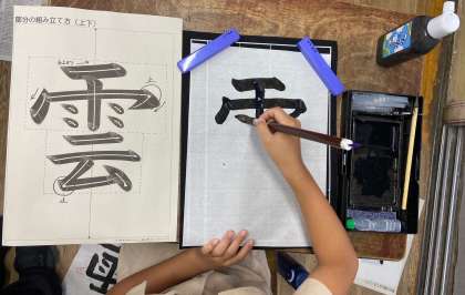 「雲」を書きました。あめかんむりの筆運びが難しかったですね。姿勢と筆を立てることに気を付けて、丁寧な作品ができあがりました。今日の一番を掲示します。