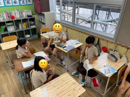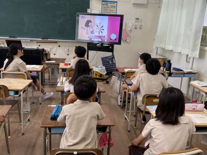 先週から「What time is it?」の学習をしています。今日はビートに乗せて、質問と答え「It's seven. It's breakfast time.」のフレーズの練習をしました。DJやラッパーになった気分でノリノリでしたね!