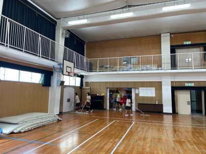 講堂に行ってみると、運動委員会のメンバーが床掃除や体育用具の片付けなどをしていました。みんなのために陰で支えてくれているメンバーがいることを忘れないようにしたいですね。