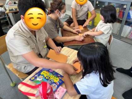 製作では、低学年と高学年がペアとなり活動しました。高学年が低学年に寄り添って教えてあげる姿は、本当にすてきでした!