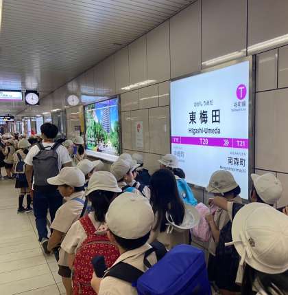 天候が怪しかったので、各教室でお弁当を食べてから出発しました。東梅田まで歩きでがんばりました!間もなく、NHKホールです。