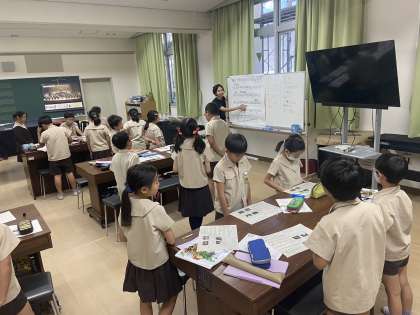 漁師の掛け声を意識しながら、ソーラン節をうたいました♪ 「ドッコイショ〜、ドッコイショ!」と、力強い声が出ていましたよ〜!