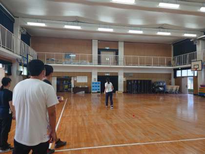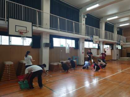 大淀メソッドを活用したボール投げ運動の授業に向けた事前研修。