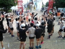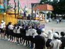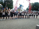 はじめは手を振って盛り上がっていた大淀小学校のみんなでしたが、最後には踊りの振り付けを教わり、パレードの列に入って一緒に踊っていました。