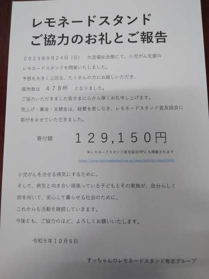 お礼のメッセージが届きました! 〜 すっちゃんのレモネードスタンド