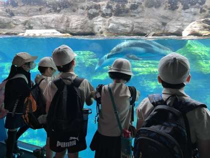 今日は海遊館・天保山へ社会見学に行きました。いろいろな魚や動物を見て、一緒に回るお友達と感想を伝え合っていました。複数の学校が同日に見学していたので混雑していましたが、事前に伝えられた集合時間に間に合うよう腕時計を見ながら計画的に回っていました。3年生になり半年がたち、とても頼もしくなりました。