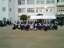 渋滞により、予定時刻より到着が遅くなりましたが、無事に学校に着いて、帰校式を行いました。