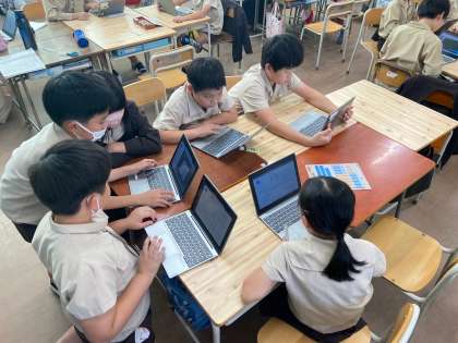 国語科:「くらしの中の和と洋」から和と洋の相違を、班で調べ学習をしています。焼きおにぎりや瓦について話し合いが進んでいました。パワーポイントの使い方も助け合っています。