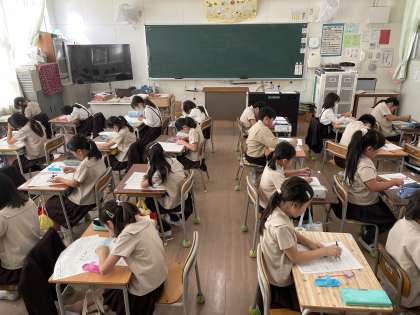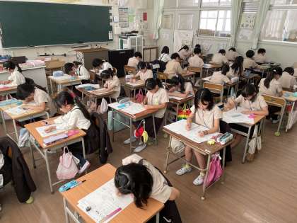 テストに取り組む姿も真剣そのもの。時間配分を気にしながらコツコツと解くことができていました。