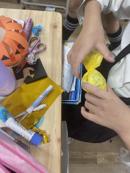 来週の幼小交流で、中大淀幼稚園のきりん組さんとうさぎ組さんに渡すキャンディも、心込めて作りました。