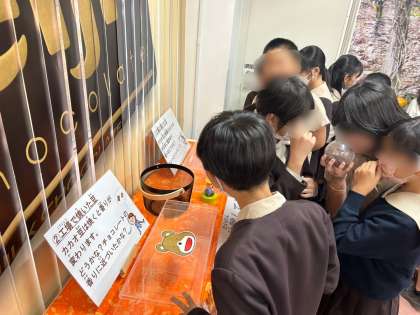 明治なるほどファクトリーで、きのこの山の製造ラインを見学しました。