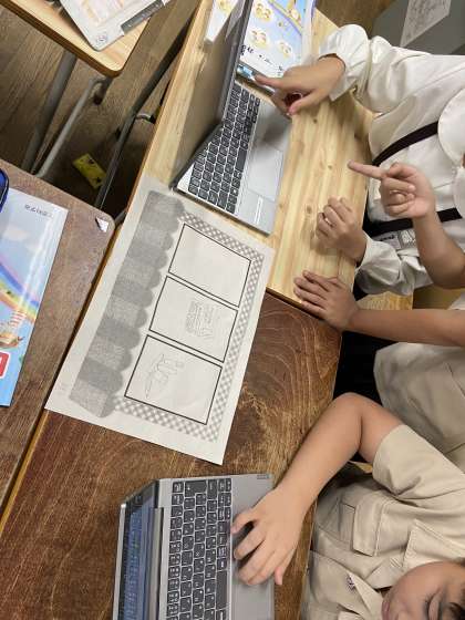 shopを開こう!」の学習でした。班活動で「こんな文房具があればいいな」を考えて、英訳をしました。全部の文房具が1つになっているペンや、答えが透ける筆箱など、ユニークな品々を発表してくれました!