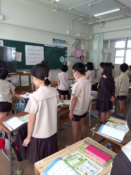 今日は、「ふじ山」の歌唱を練習しました。遠くに呼びかけるように歌うことができました。