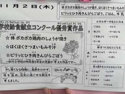 今日の献立は、「学校給食献立コンクール優秀賞作品」で選ばれた献立です。