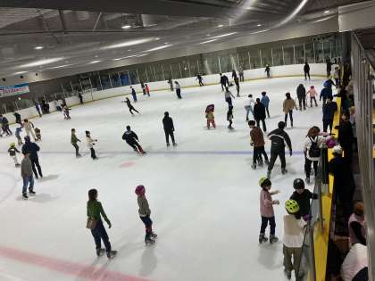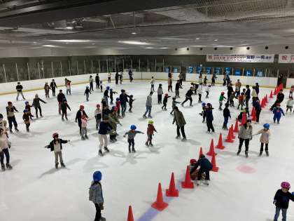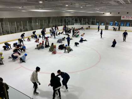 すってんころりん。しながらも、メキメキ上達する子どもたち。今年度のPTA親子遠足は、大阪市立浪速アイススケート場でのスケートです。笑顔がたくさんみられました!