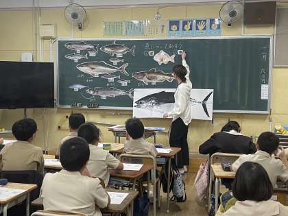 大阪市の「食育の推進活動」で、4年生の各クラスでは、お魚の栄養について教えていただきました。