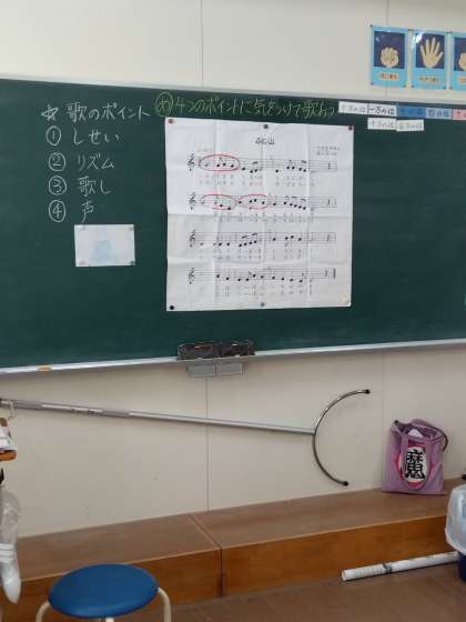 「ふじ山」の歌唱のテストを班ごとにしました。お友達の良かったところをたくさん発表することができました。