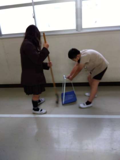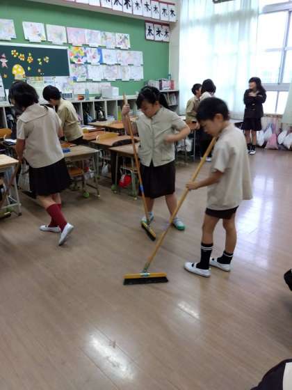 自分の担当の清掃場所がピカピカになるように協力して掃除をしています。美化委員さんに、「いつも綺麗に掃除ができています。」と褒めてもらいました。