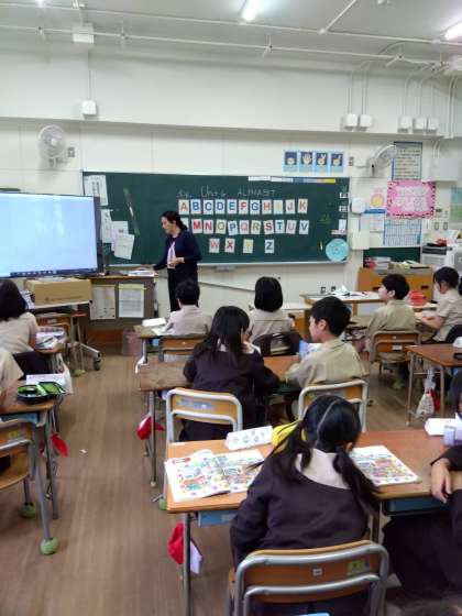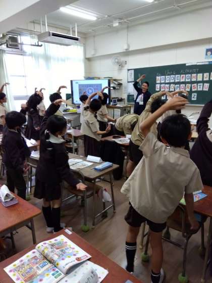 アルファベットのジェスチャーゲームは、みんなノリノリでした。
