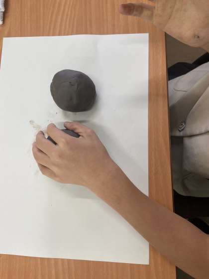 粘土が気持ちいい〜、とシーサー作り楽しんでいます!想像力を膨らませながら、十人十色の作品になっています!